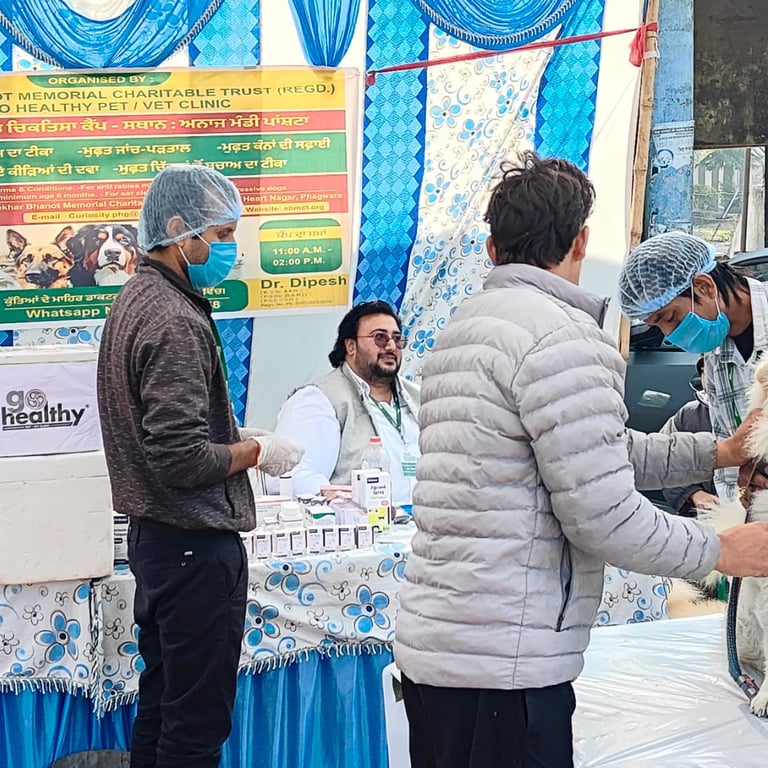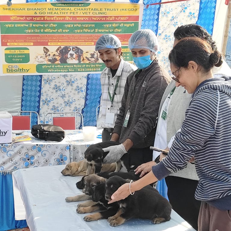 A community pet health checkup camp was held on 7th December 2025 at Anaj Mandi Panchat to offer free medical care, vaccinations, and support for pets in need.